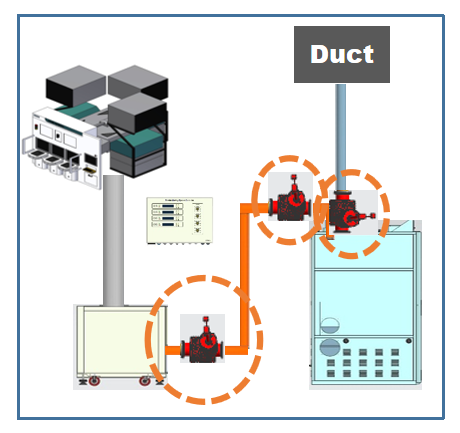 · 输送: 采用专业的空气动力学原理,通过高压喷射HOT N2加速了副产物在管道内的流速,尤其提高了沉积高危区“管道壁面”上的产物流速;